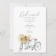 Este girassol rústico, bicicleta azul tandem, cor d'água, convite para o ensaio de casamento apresenta girassóis elegantes, de cor d'água, com folhagem verde-clara interligados sobre uma tipografia única. Um tema maravilhoso para casamentos de primavera, casamentos e casamentos outono de verão e fácil de personalizar. Baseado em uma cor d'água original por © Lisa Audit Art. Envolva-se com arte animadora.