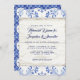 Eterno, clássico e, no entanto, country chic moderno azul e branco O ensaio Janta o convite perfeito para casamentos de verão. design de casamento bonito de verão pintado de mão. Pintado em lapis, cobalto e azul marinho misturado com e um toque de bege cinza. O estilo de chic de luxo que mistura perfeitamente rústico e elegante. Direitos autorais, Audrey Jeanne Roberts