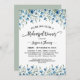 Este belo convite de janto de ensaio é rústico e elegante. Apresenta caligrafia com roteiros de rico nas extremidades das letras e uma borda de flores silvestres boho-chic em tons de azul empoeirado e verde-sábio. Ele tem informações sobre o ensaio de casamento, assim como sobre o janto comemorativo que se segue. Perfeito por manter a noiva informada sobre todas as festividades pré-casamento.