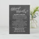 Este ensaio de casamento e o convite de janto mostram uma frase criativa de "prática faz perfeito" que convida a festa de casamento a se juntar à noiva e ao noivo no ensaio de casamento e jantar seguir. Design apresenta um giz branco manuscrito sobre fundo texturizado de conselho preto e um monograma simples do casal no topo.