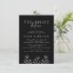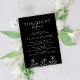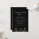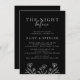 Elevem seu janto de ensaio de casamento com este eterno, convite elegante. Comece as suas festividades de casamento em estilo com este simples e espantoso convite. A paleta de cor branca e preta clássica e delicada borda floral criam um ar de elegância, definindo o tom para um janto inesquecível de ensaio. Impresso sobre fundo preto, este convite expele sofisticação a partir do momento em que seus convidados abrem o envelope. Personalize-o com seus detalhes de evento para torná-lo exclusivamente seu. Quer você esteja planejando uma reunião íntima ou uma celebração maior, este convite terá seus convidados antecipando ansiosamente o evento principal.