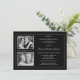 Crie seus próprios convites elegantes para a festa de aniversário de 25 anos de casamento com dois (2) inserts de fotos e adoráveis acentos prateados vintage em fundo preto. Tipografia em estilo letterpress formal. Elegante, acessível e exclusivamente personalizado para você! Adicione suas próprias fotos "Passado e Presente" e personalize o nome, data e detalhes para o seu feliz evento. Pode ser facilmente personalizado para outras ocasiões especiais e celebrações de marcos. Perfeito para uma lembrança enquadrada que sua família irá guardar para sempre. **NOTA: Tamanho para cartões de convite planos pequenos. Outros tamanhos e estilos disponíveis. © Teri Francis. Selos e cartões de agradecimento combinando disponíveis.
