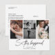 Anuncie seu alegre casamento secreto com nosso cartão postal de múltiplas fotos "Assim Aconteceu"! Este encantador cartão postal apresenta um design elegante que exibe várias fotos, capturando os momentos especiais da sua celebração íntima. Perfeito para compartilhar a sua notícia emocionante com amigos e familiares, este cartão postal permite que você exiba lindamente os destaques do seu grande dia. Feito com carinho e atenção aos detalhes, é uma maneira encantadora de deixar todos sabendo da sua felicidade de recém-casado.