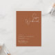 Este convite para o fim de semana spa e modelo itinerário apresentam uma fonte escura e escrita à mão e um design moderno minimalista. Edite facilmente o texto *maioria* e todas as cores para atender às suas necessidades de eventos. A combinação de cor laranja queimada e esticada faz dela a adição perfeita à sua solteira boêmica do deserto, fuga de chás de panela, viagem de aniversário ou qualquer outro evento.