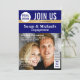 Este convite único, chique e elegante, de 5 x 7", foi projetado para se parecer com a capa de uma revista líder para casamentos. Tem espaço para a fotografia do casal, detalhes do evento e as palavras EDIÇÃO ESPECIAL em azul marinho sobre um fundo branco. Todos os modelos podem ser personalizados para se adequar ao seu dia especial e podem ser movidos, ter extras adicionados e ter a cor e o estilo da fonte alterados para atender às suas necessidades. CORES - Azul escuro, dourado e branco. PERSONALIZE - usando o botão "personalizar". PEDIDOS PERSONALIZADOS - Para obter ajuda, alterar cores e produtos correspondentes, entre em contato comigo em clientrequestrw@gmail.com.
