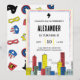 Traga a emoção dos quadrinhos para o dia especial do seu filho com este convite de aniversário de super-herói ousado para meninos. Projetado com um tema divertido em estilo de quadrinhos, este convite personalizável é perfeito para crianças que amam ação, heróis e aventuras. Personalize com o nome da criança, idade, detalhes da festa e torne-o único. Ideal para aniversários com tema de super-heróis, este convite define o tom para uma celebração épica que seu pequeno herói e seus amigos nunca esquecerão.
