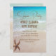 Cena de praia e convites de festas surpreendentes com opção de download instantâneo. Comemore o aniversário de um adulto enviando convites temáticos especiais para a praia. O texto marrom-areia, em fontes modernas, é impresso sobre um mar turquesa com pequenas ondas batendo na costa. Uma estrela do mar solteiro, ou estrela do mar, está no canto inferior. As placas impressas vêm com várias opções de papel para upgrade, conforme desejar.