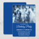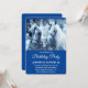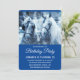 Convite de festa de aniversário com uma fotografia de um par de cavalos engatados juntos. Um dia de neve e um filtro azul cria uma foto mágica.