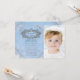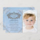 Linda princesa de conto de fadas azul e prateado, uma vez em um convite de aniversário com elegante quadro de coroa reluzente prateada em um belo fundo azul de Cinderela e prata. Você pode personalizar facilmente este bonito convite de aniversário da princesa do conto de fadas azul e prateado para o seu evento simplesmente adicionando seus detalhes de fotos e eventos no estilo e cor da fonte, e o texto que preferir. Todos os designs são gráficos impressos sem joias reais, arcos, brilho, etc.