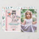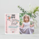 Este belo convite para fotos de aniversário de uma garota "uma vez por vez" apresenta um livro rosa desenhado com flores. O verso apresenta um fundo branco com padrões florais. Personalize-o para as suas necessidades.