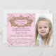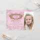 Bela princesa de contos de fadas com brilho rosa e dourado convite de aniversário com foto e coroa dourada fancy em um belo fundo rosa e dourado. Você pode personalizar facilmente este convite de aniversário de princesa de contos de fadas rosa e dourado para o seu evento, simplesmente adicionando sua foto e detalhes no estilo de fonte e cor, e texto que preferir. Este é um design impresso sem jóias reais, laços, brilho, etc.