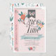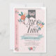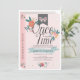 Este belo convite de aniversário de uma garota "uma vez por vez" apresenta um livro rosa desenhado com flores. O verso apresenta um fundo branco com padrões florais. Personalize-o para as suas necessidades.