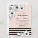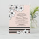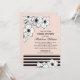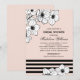 Flores de anêmona desenhadas em preto e branco sobressaem contra um fundo suave cor-de-rosa nesta moderna convite de chá de noiva. Listras pretas ousadas ao longo da parte inferior e tipografia serifada nítida criam uma estética contemporânea e fashion, enquanto a caligrafia adiciona um toque romântico. Uma opção linda para um chá ou almoço elegante. Todos os detalhes são totalmente personalizáveis.