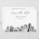 Convite de save the date moderno em preto e branco de Sacramento. A frente apresenta um esboço deslumbrante, definindo o tom perfeito para o seu dia de casamento. Adicione sua própria foto no verso e personalize o texto para torná-lo seu. Entre no ferramenta de design Zazzle para personalizações adicionais de design.