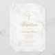Convite Escrita Dourada Cruzada de Mármore Branco Batismo
