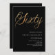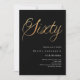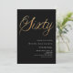 Um convite moderno e na moda para uma 60ª festa de aniversário para ele e para ela. Fundo preto e a palavra Sessenta escrita com letras de ouro falsas. Personalize e adicione um nome e detalhes da parte.