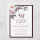 Convite Escrita Floral Púrpura de ameixa Elegante 50º Aniv