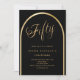 Um elegante convite de 50 anos. Um fundo preto com um arco de ouro na frente.