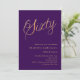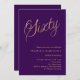 Um convite moderno e na moda para uma 60ª festa de aniversário. Um fundo de cor púrpura e a palavra Sessenta escrita com letras elegantes e grandes em dourado falso. Personalize e adicione um nome e detalhes da parte.