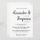 Imagem elegante do roteiro de tipografia na moda no convite casual de casamento em simples letras brancas e pretas, com nomes de noiva e noiva, caligrafia. ++++++++++++++++++++++ Você pode alterar as cores do texto e do plano de fundo após selecionar a opção EDITAR USANDO a FERRAMENTA DESIGN em PERSONALIZAR ESTE menu MODELO. +++++++++ O convite é adequado para qualquer época - primavera, verão, outono, inverno - cerimônia de casamento e recepção.