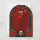 Escuridão real, coração gótico e crânio. Um pingente vermelho surpreendente pendurado numa delicada corrente, o pingente irradia intensidade ardente e está preso em um quadro opulente preto e dourado. Ao pé da imagem, encontra-se um crânio com uma coroa vermelha, que brilha como uma joia vermelha-do-sangue em contraste com a sua aparência pálida.