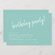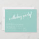 Convites de festas de aniversário casuais e bonitos com texto de título "festa de aniversário!" em uma fonte de script. Texto branco sobre fundo azul-verde. Pode ser mudado para qualquer idade.