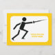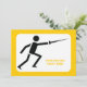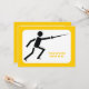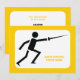 Convite personalizado de esgrima silhueta preta com uma iconografia minimalista de uma silhueta preta de um esgrimista segurando sua espada e seu texto em fundo branco com borda amarela.