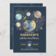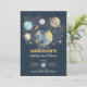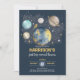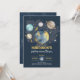 Celebre o marco especial do seu filho com este convite de aniversário de tema do espaço sideral mágico. Apresentando planetas imaginários, luas e estrelas em marinho e mira dourada.