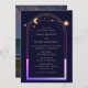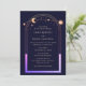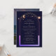 O Rainbow Sun Star Astronomy Space A Lua Astronomy Space Invisions apresenta sol, lua e estrelas com um quadro colorido de arco-íris pastel sobre um fundo azul-marinho escuro. Dentro é a sua informação de convite de casamento. Personalize editando o texto nas caixas de texto e adicionando sua foto favorita no verso. Projetado por ©2024 Evco Studio www.zazzle.com/store/evcostudio