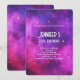 Convite Espaço Rosa e Roxo e Estrelas Falso Aniversário Ga