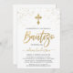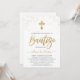 Bautizo, garoto moderno e elegante, Convite com fundo branco e ouro, elegante cruz de ouro, script de tipografia Baptism em letra de tendência. Para editar este modelo, clique em personalizar mais.