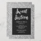 Personalize e personalize o convite faux sparkly Sweet 16. Doce coleção de dezesseis por PLdesign. Grelhas brilhantes de preto e branco. Brilhantes reluzentes brilhos brilhantes. Foto de cinza brilha!