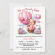 podemos esperar um balão de ursinho rosa vestindo um convite para o chá de uma menina vestida.