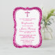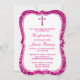 Luminosas Rosa Cruzam A Santa Comunhão Ou Convites De Confirmação. Estes convites podem ser personalizados para qualquer evento sagrado, incluindo Confirmações, Crianças, Comuniões, Batismos e muito mais. Adicione seu texto personalizado usando a seção "Editar este modelo de design" ou clique no botão azul "Personalizá-lo" para alterar o estilo e a cor da fonte ou para adicionar uma foto ou texto extra à parte traseira do convite. * Observe que o Zazzle só vende convites impressos, de forma que esses convites não tenham brilho real.