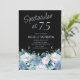 Azul empoeirado e floral branco em preto "Espetacular a 75" no convite de aniversário 75. Entre em contato comigo para obter assistência com a personalização ou para solicitar correspondência ou coordenar produtos Zazzle