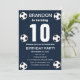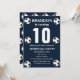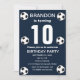 10ª Festa de aniversário para fã de futebol, esportes, crianças, rapazes, para ele. Azul e branco, moderno, convite bolsa mensageifesta de aniversario elegante. Por favor, personalize-o com os seus detalhes.