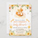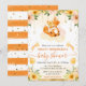 Bebê Floral de Cuta Aquarela em design de Nuvem com Flores de Verão bege e Amarelo, bordas de ouro e confete de brilho dourado com faixas de laranja fundo