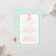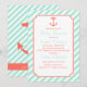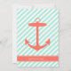 Uma silhueta de âncora colorida está sobre um fundo de listras diagonais brancas e verdes de espuma marinha. As cores neutras de gênero tornam esses convites excelentes para qualquer um que mantenha o gênero uma surpresa.
