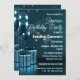 Apresentando o nosso 50º Convite de aniversário da Surpresa - um design que captura a magia de uma noite estelar. O fundo teal profundo brilha com luzes suaves e difusas, criando um ambiente encantador. À esquerda, elegantes balões azuis metálicos e elegantes ascendem, complementando uma pilha de caixas de presentes brilhantes embrulhadas em azul iridescente correspondente. O texto "Festa de aniversário surpresa" apresenta um belo e fluente script, enquanto os detalhes do evento são apresentados em um sans-serif limpo. Um sutil confetti adiciona um toque festivo. Este modelo personalizável oferece uma sensação sofisticada, mas celebratória, perfeita para uma celebração de jubileu ouro.