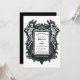 O esqueleto gótico amava até a morte nos convidar para o casamento. Dois esqueletos tocando as mãos enquadram este cartão que é escuro e humilde. Perfeito para o seu casamento gótico ou de Halloween. Veja a coordenação de itens no nosso compro, Encantado Finch.