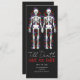 Defina o tom para o seu dia encantador com este design único e memorável. No centro do cartão, dois esqueletos são representados, de mãos dadas e deitados em uma cama de rosas Correspondendo Itens em nosso compro por um tema de festa completo.