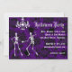 Estes glamourosos esqueletos dançam a noite num fundo roxo profundo, sob um candelabro cristal. Este Convite para Festas de Halloween é coberto por uma cor damasco de aranha e é mostrado no papel básico. Para somar brilho, recomendo o shimmer do papel de gelo metálico.