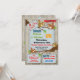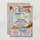 Casais Rústicos Super divertidos da Woodland Chás de fraldas para gêmeos com esquilos bonitos, galhos com folhas verdes, papel vintage com tipografia de excelente e um chocalho vermelho em um fundo de prancha rústica. Sala atrás para informações extras. Bom para gêmeos de menino ou menina ou chá neutro para bebês. Ilustração desenhada à mão por McBooboo.