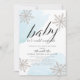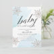 Este elegante convite de chá de fraldas virtual/zoom/online "baby, it is frito out" apresenta um fundo azul claro em aquarela com falso falso floco de neve prateado. O verso apresenta um fundo de neve gelada. Personalize-o para as suas necessidades. Você pode encontrar produtos correspondentes na minha loja.
