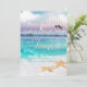 Convite de casamento Estamos fazendo isso - Céu cor-de-rosa e lavanda do sol com nuvens fofinhas, o nascer do sol apenas começando a refletir sobre as ondas do oceano. Arranjo tropical clássico para o casamento perfeito na praia ou para o casamento na ilha de destino.