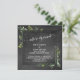 Este convite encantador para recepção de casamento ou festa somente para recepção apresenta um fundo de quadro-negro, bem como um distintivo sobreposto de quadro-negro quadrado bordeado, entre os quais coloquei buquês desgrenhados de folhagens em aquarela. Usando uma fonte de letra cursiva moderna e elegante, eu representei as palavras "nós somos casados" apresentadas no topo, um cabeçalho para seus detalhes pessoais. Usando a mesma fonte "elegante", eu coloquei um gráfico que diz "sr & sra" no verso. Todas as camadas foram adicionadas separadamente e deixadas destrancadas para que você possa alterar o que desejar. // 57 //