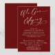 Você está pulando o casamento tradicional e optando por uma celebração privada. Mas você quer que seus amigos e familiares estejam ao seu redor para celebrar! Este cartão elegante e versátil pode ser a solução ideal para você! Com uma fonte de caligrafia moderna e luxuosa, o cabeçalho diz "Estamos Fugindo". Use os campos do modelo para adicionar seus detalhes pessoais. E mude a cor do fundo para qualquer cor que preferir! // 137 //