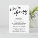 A distinção deste conjunto se deve à fonte moderna de caligrafia manuscrita usada para as frases de destaque. Nesta peça, a fonte manuscrita com letras à mão foi usada para criar um gráfico que representa as palavras "we're eloping". Use os campos do modelo para adicionar seus detalhes pessoais e tornar este design moderno e único. O fundo pode ser alterado para qualquer cor de sua preferência. Por favor, entre em contato para qualquer solicitação especial ou para obter ajuda na personalização. // 100 //