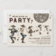 Defina o palco para um shindig inspirado em vintage com este convite de festas de Halloween divertido. Apresentando um fundo branco e um título assustador "Estamos Morrendo na Festa" em cartazes distantes ocidentais, este convite mostra esqueletos dançarinos aquarela em chapéus e botas de vaqueiro rolando debaixo de uma bola de disco e estrelas retrorreflectoras. O divertido convite de festas do Dia das Bruxas é a forma perfeita de trazer uma reviravolta divertida, mas assustadora, para a sua celebração.