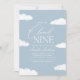 Convide amigos e família para compartilhar a alegria da chegada do seu pequeno com este convite de chá de fraldas azul empoeirado 'nuvem nove'.
